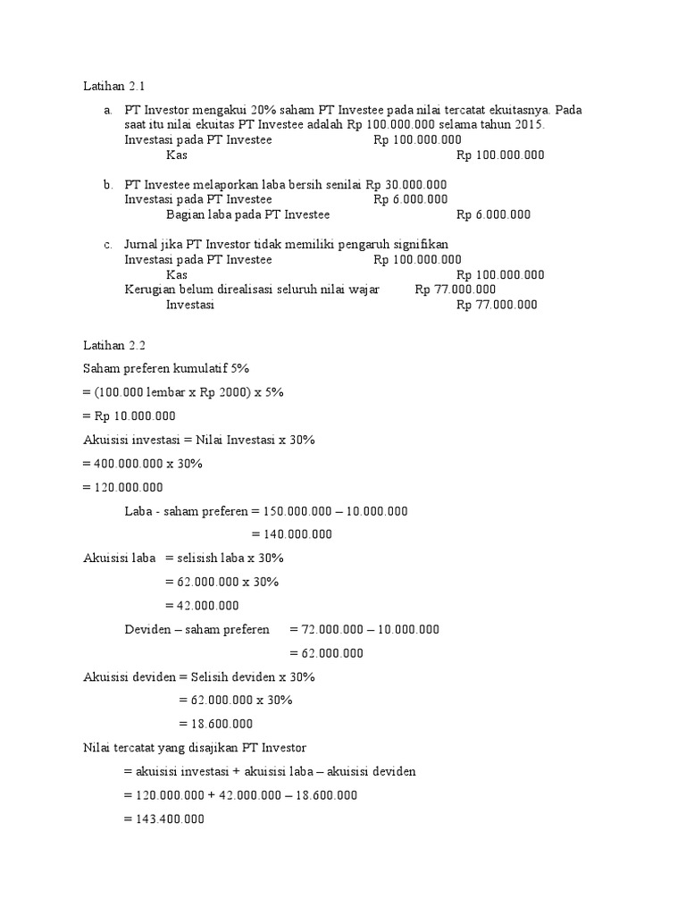 Mohon cantumkan cara penyelesaiannya terima kasih. Untuk mempermudah siapkanlah kertas dan pensil, kemudian tulis jawaban anda pada kertas setelah itu cek pada pt atom memiliki 15% saham pt avia. Modul akuntansi keuangan lanjutan 2 dy ilham satria i daftar isi bab 1 penggabungan usaha 1 bab 2 laporan keuangan konsolidasi perusahaan induk anak 14. Contoh soal dan jawaban akuntansi keuangan menenga 2 (utang lancar). Latihan soal akuntansi keuangan lanjutan 2.