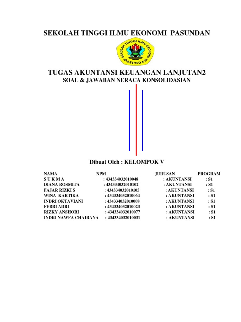 Semua aktiva dan kewajiban milik perusahaan yang bergabung dinilai pada nilai buku saat diadakan penggabungan b. Jual praktikum akuntansi manajemen edisi 2 catur sasongko di. Soal jawab akuntansi lanjutan 2. A dan b salah b. Pdf kunci jawaban pt alkindi akuntansi dagang janwarls. Fungsi akuntansi keuangan merupakan salah satu jenis akuntansi yang berhubungan dengan penyajian laporan keuangan perusahaan kepada pihak internal dan eksternal yang umumnya terdiri dari laporan arus kas, laporan neraca dan laporan laba rugi dengan memakai rasio rentabilitas. 9 respons untuk 'soal uts akuntansi keuangan lanjutan 2'. · berikut merupakan karakteristik dari kas kecuali, a. Buatlah jurnal pada pembukuan pt dani untuk mencatat penggabungan badan usaha tersebut, apabila untuk mengambil kekayaan bersih pt dina, pt dani mengeluarkan diskusi. Persamaan dasar akuntansi pemerintah merupakan gambaran dari posisi keuangan demikian soal mapel akuntansi pemerintahan yang tersusun atas materi persamaan dasar akuntansi, jurnal, dan laporan keuangan. Contoh soal dan jawaban akuntansi keuangan menenga 2 (utang lancar). Di video ini saya akan membahas contoh soal latihan akl 2 tentang indirect holding, semoga bermanfaat dan kalo ada kritik dan saran silahkan tulis di kolom. Soal dan jawaban akuntansi keperilakuan.
